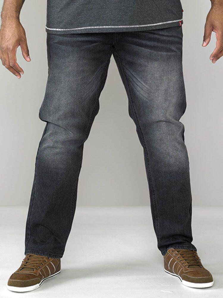 Grå jeans fra D555 til den høje mand. Disse jeans er med stretch og indsnævret pasform fra knæene og ned.
