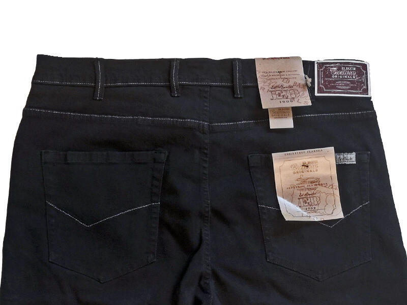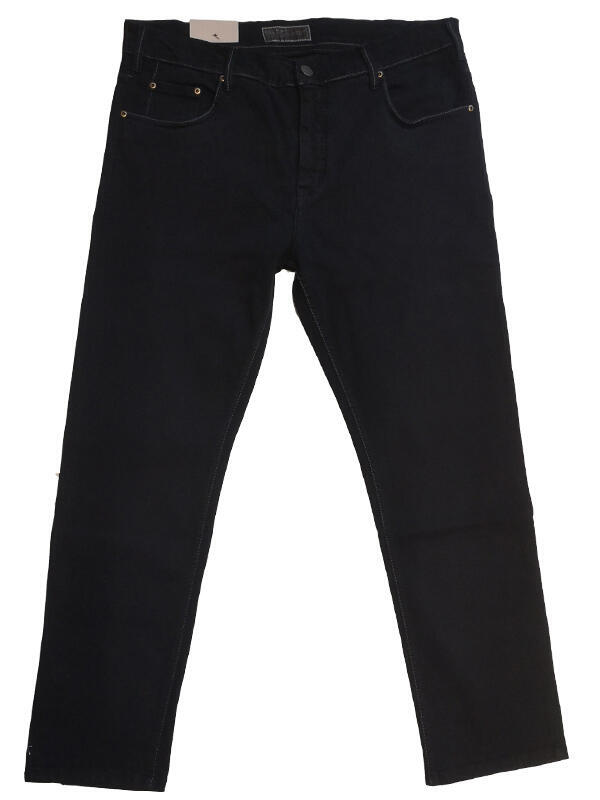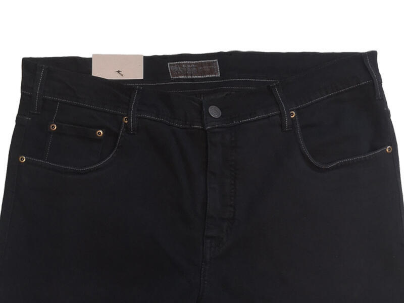 Svarta jeans med 5 fickor i klassisk skärning med stretch. Dessa jeans har ljusgrå sömmar på fickor, linning och längs benen.