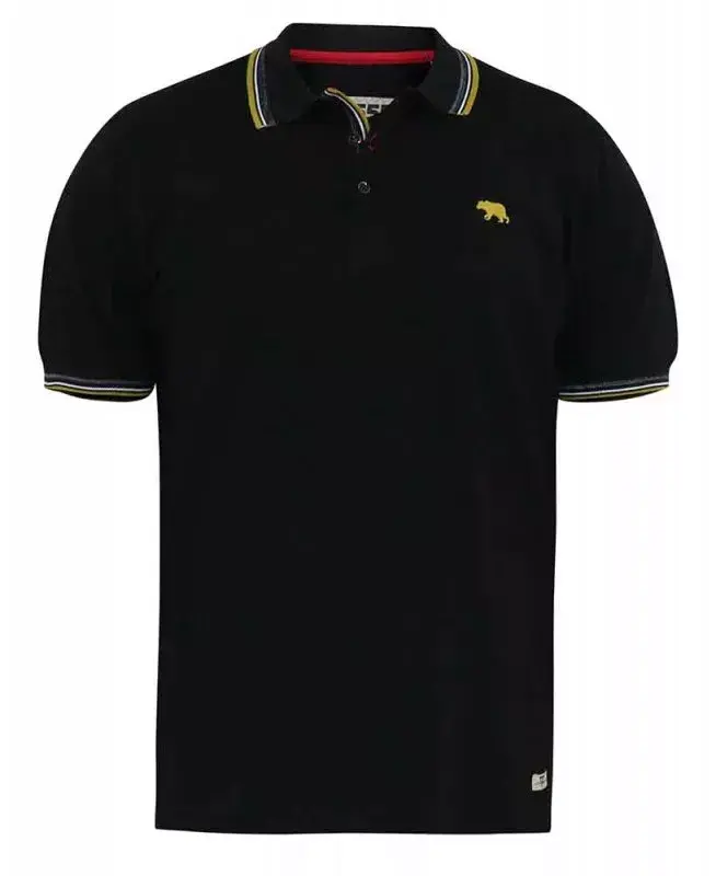 Sort polo T-shirt med kontrast striber i gul/grå (TALL) - D555