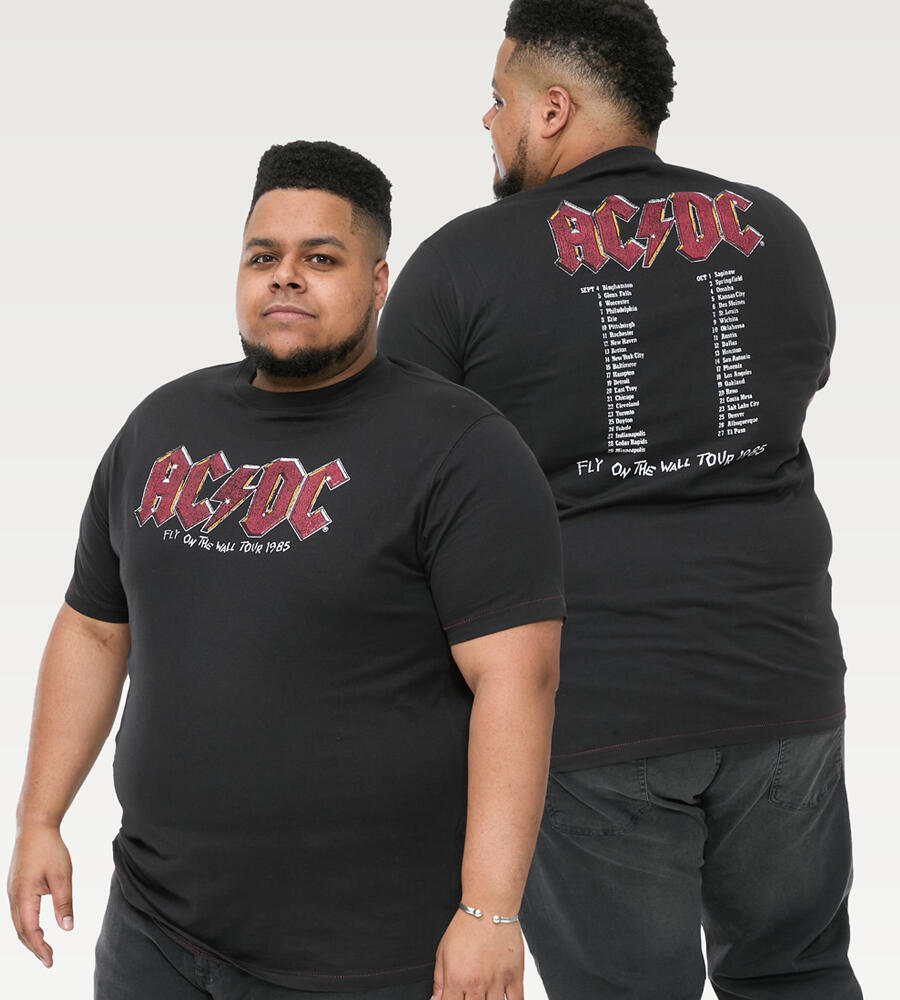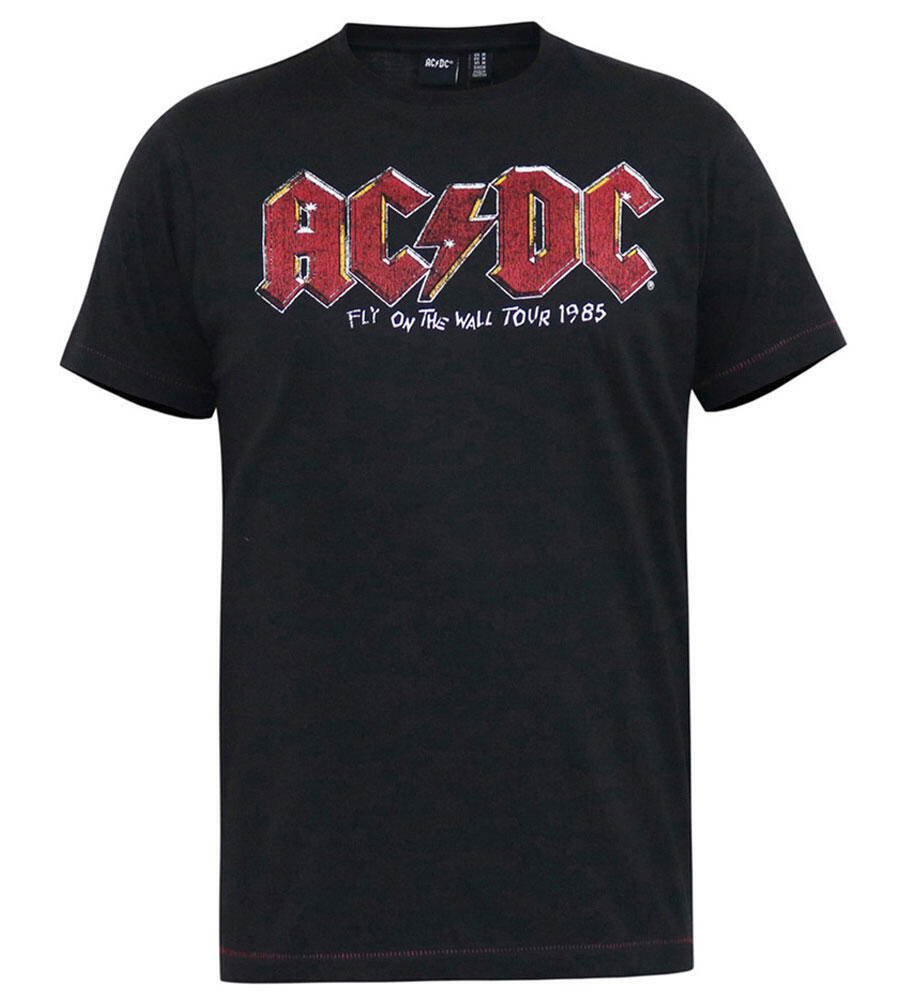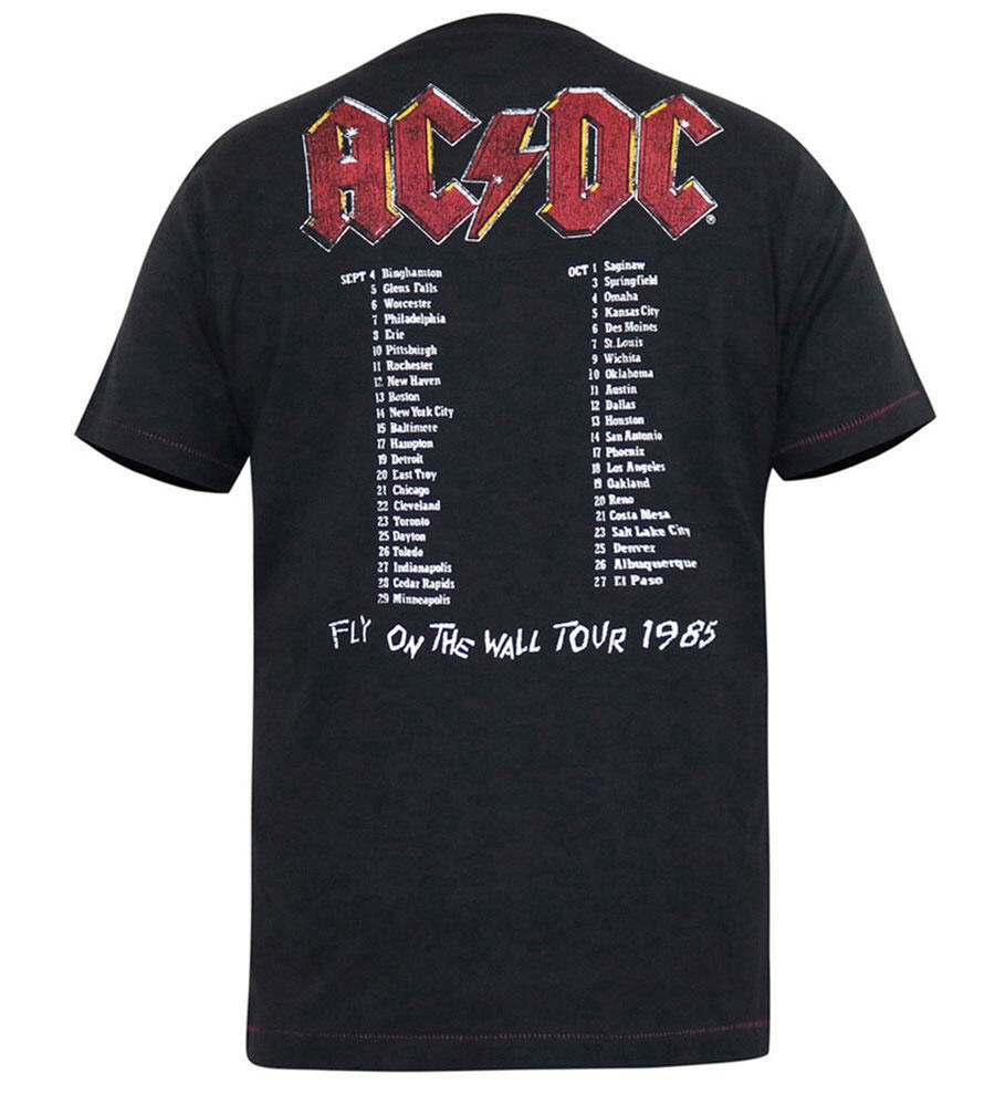 Denne T-shirt i TALL, er en hyldest til AC/DC's "Fly on the Wall Tour" fra 1985, med et iøjnefaldende vintage rock-design.