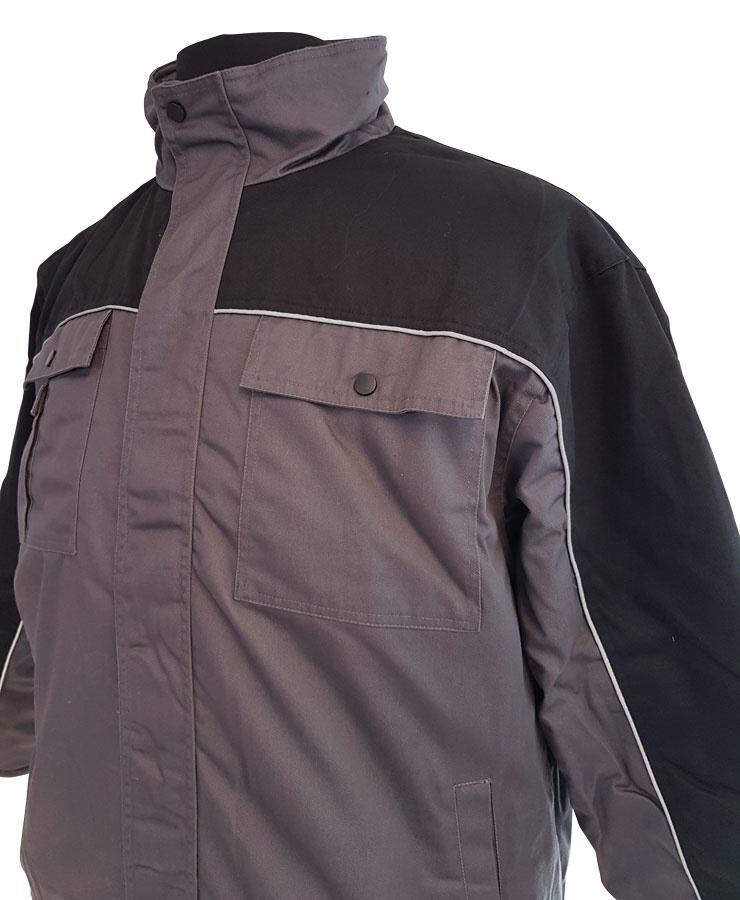 Denna fodrade kolgrå/svarta arbetsjacka kommer från en stor producent där kvaliteten står i fokus. En robust jacka för en kall höst och vinter.