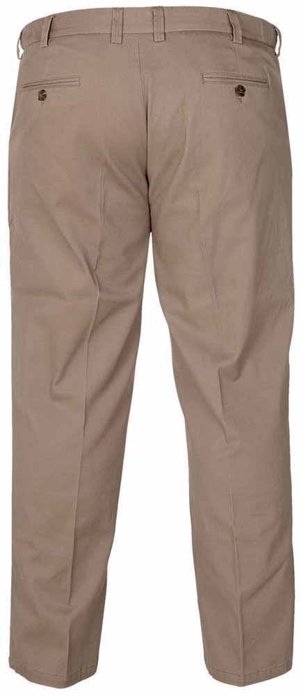 Klassiska stonefärgade / mörksandfärgade bomullsbyxor från D555. Byxorna har två framfickor och två bakfickor, och stängs med dragkedja och knapp.