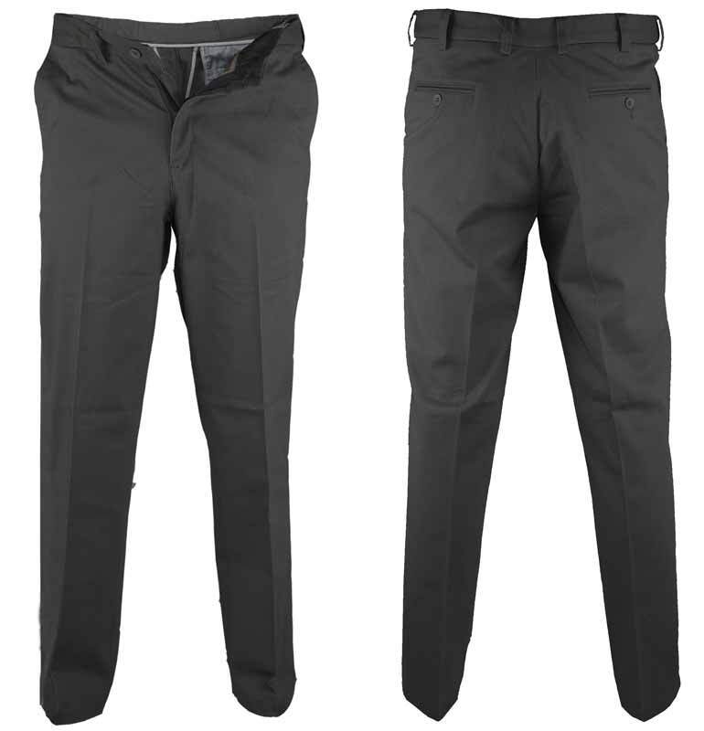 Klassiska svarta bomullsbyxor från D555. Byxorna har två framfickor samt två bakfickor och stängs med dragkedja och knapp.