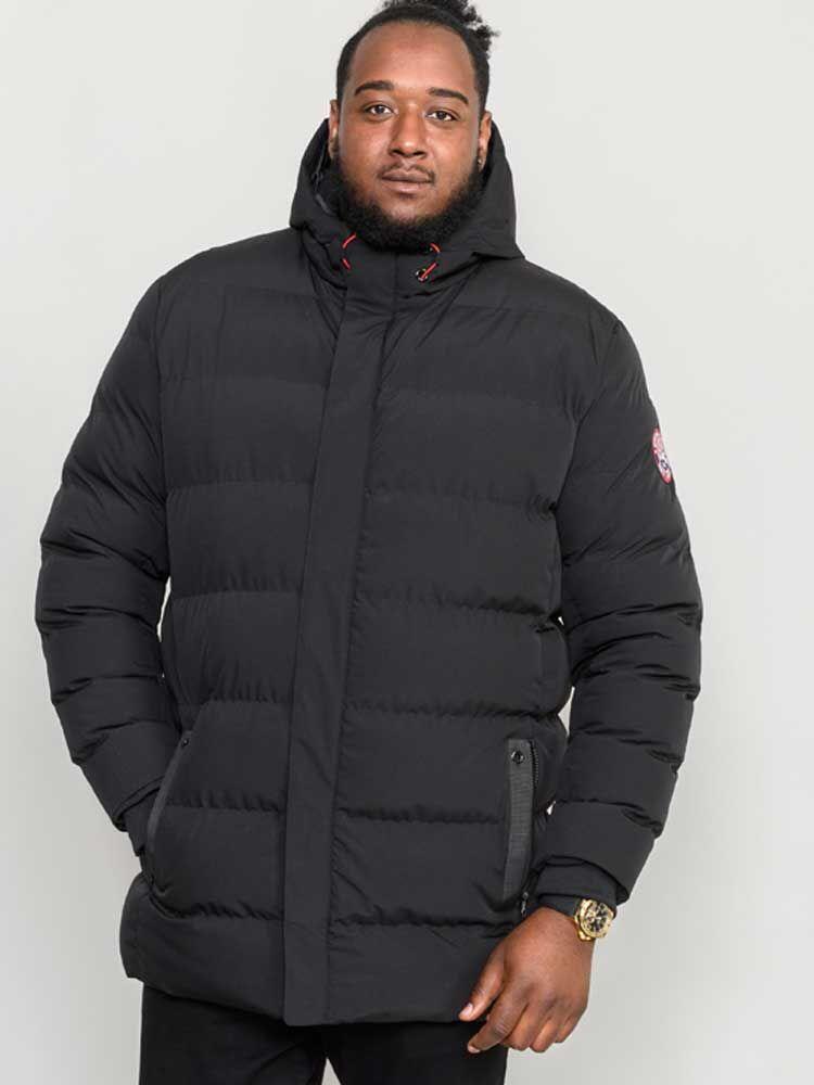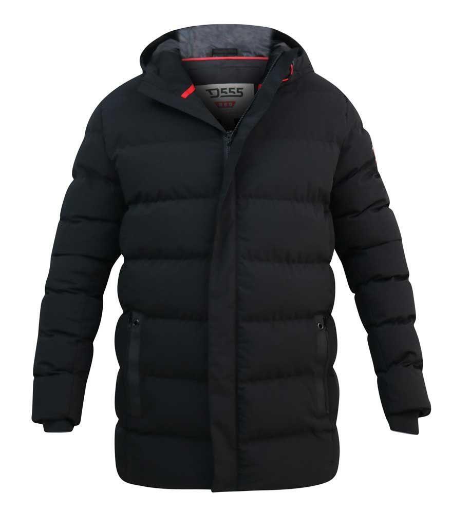 Svart täckjacka / quiltad vinterjacka från D555 med huva. Jackan har 2 bra fickor fram som kan stängas med dragkedja samt 1 innerficka. Jackan har en genomgående dragkedja samt en vindslå som stängs med kardborre. Jackan har ett slätt inre foder som gör den lätt att ta av och på.