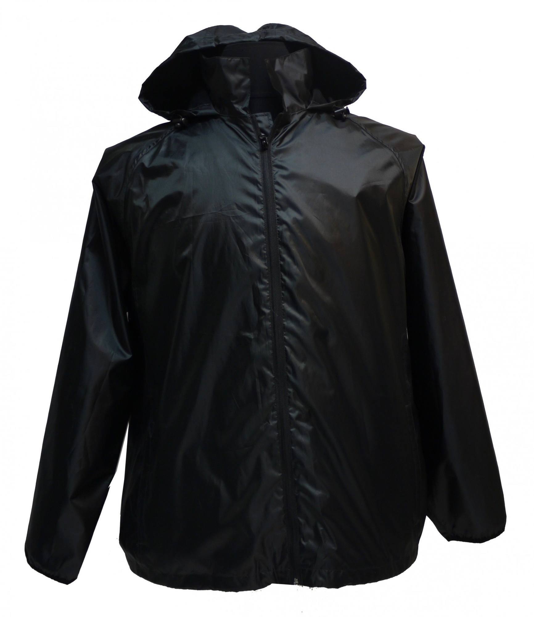 Detta är en enkel och klassisk svart regnjacka med huva, som passar bra att snabbt ta på när det är lättare regnskurar och du inte ska vistas i regnet under längre tid.