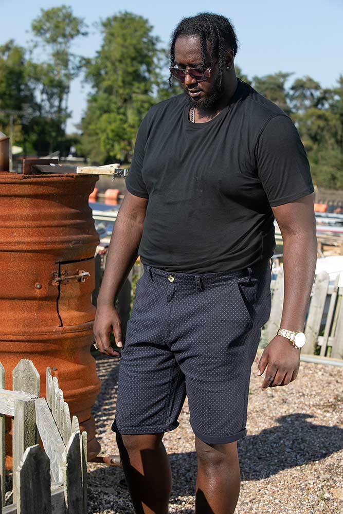 Navy stretch shorts med all-over "stjärn"-print - D555