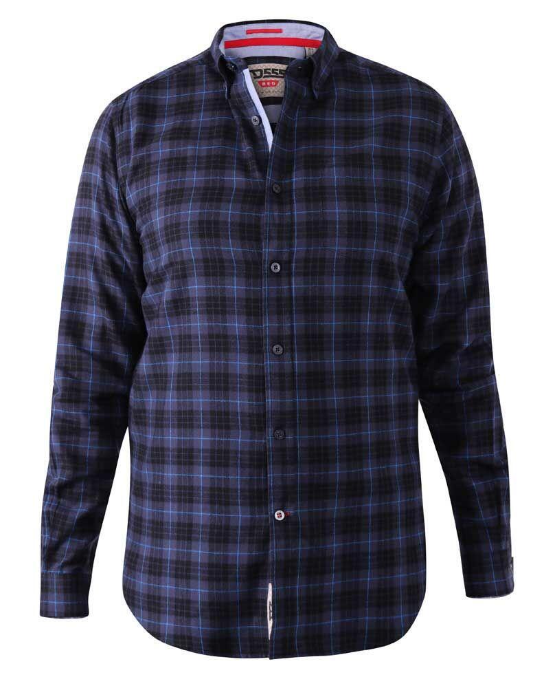 Blå/svart button-down skogshuggarskjorta med rutigt mönster och långa ärmar från D555. Skjortan har en bröstficka på vänster sida.
