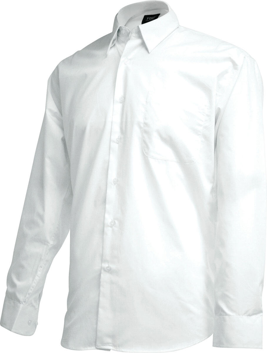 Vit poplinskjorta av god kvalitet med långa ärmar, button-down-krage och bröstficka.