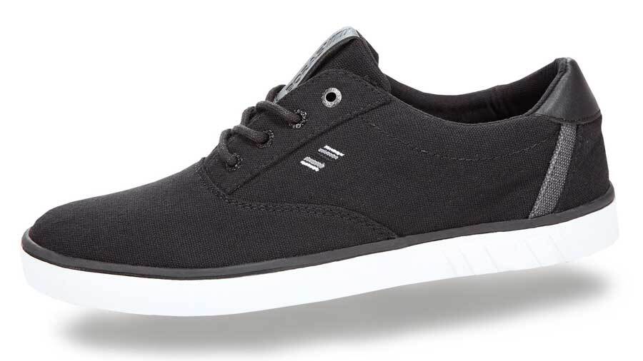 Dessa canvas-skor är svarta. Yttermaterialet, fodret samt innersulan är tillverkade i textila material.