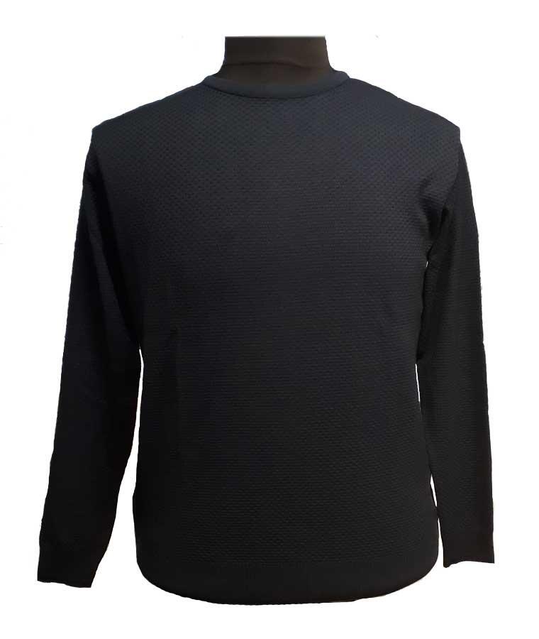 Navyblå stickad pullover med rund hals från Elkjær Strik. Denna pullover är mjuk och ger en avslappnad look med ett fint stickmönster.