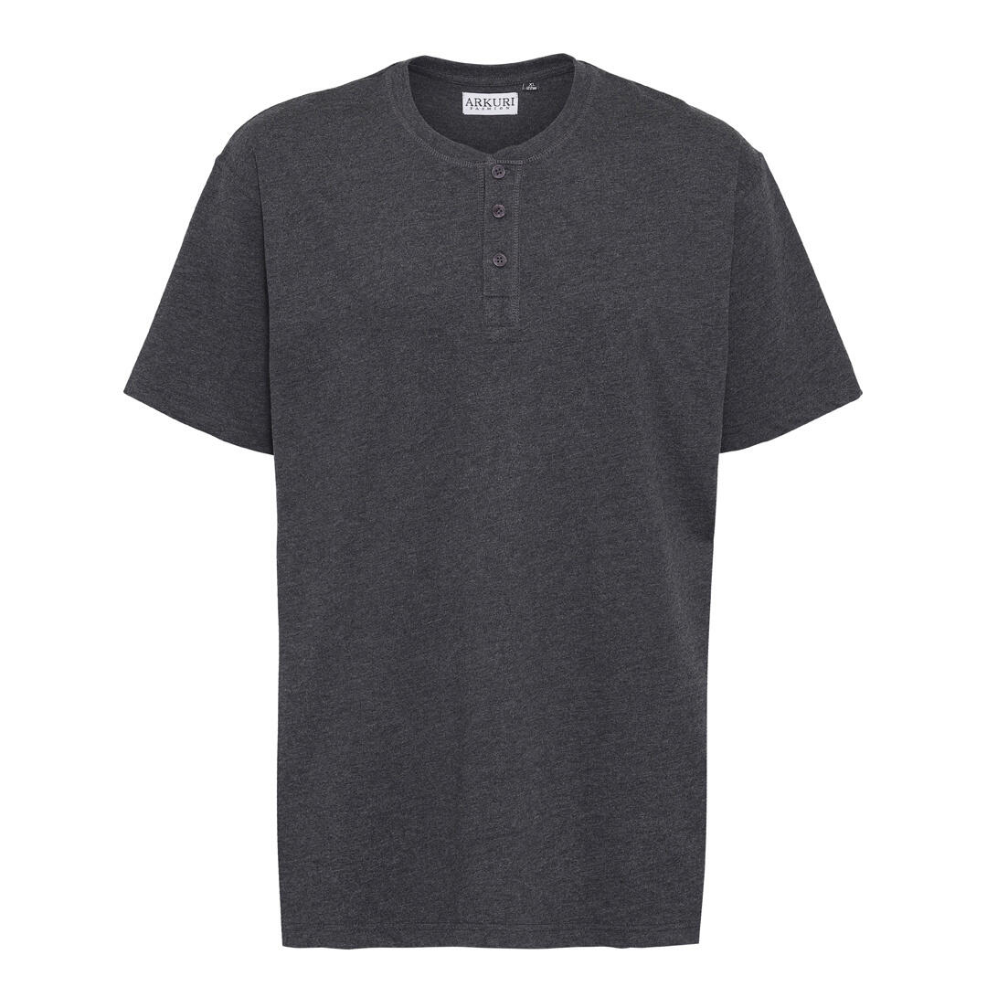 Kolgrå, mjuk och härlig Grandad T-shirt med korta ärmar och rund hals. Grandad T-shirten har 3 matchande knappar i knappslån.