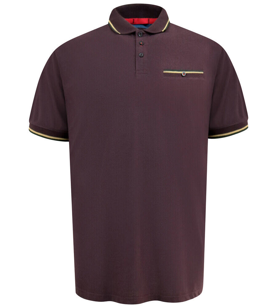 Denna bordeauxpolo från D555 kombinerar klassisk design med förfinade detaljer. Polon har en tidlös krage med knappslå och en bröstficka, båda markerade med en gul kant som ger ett elegant kontrastspel. Ärmarna är även avslutade med en gul kant, vilket skapar en stilfull helhet.