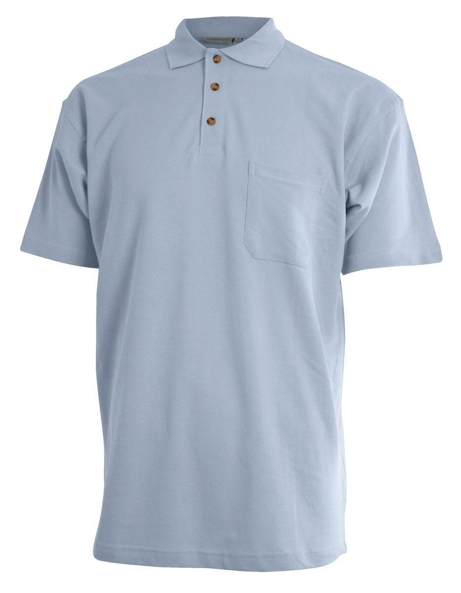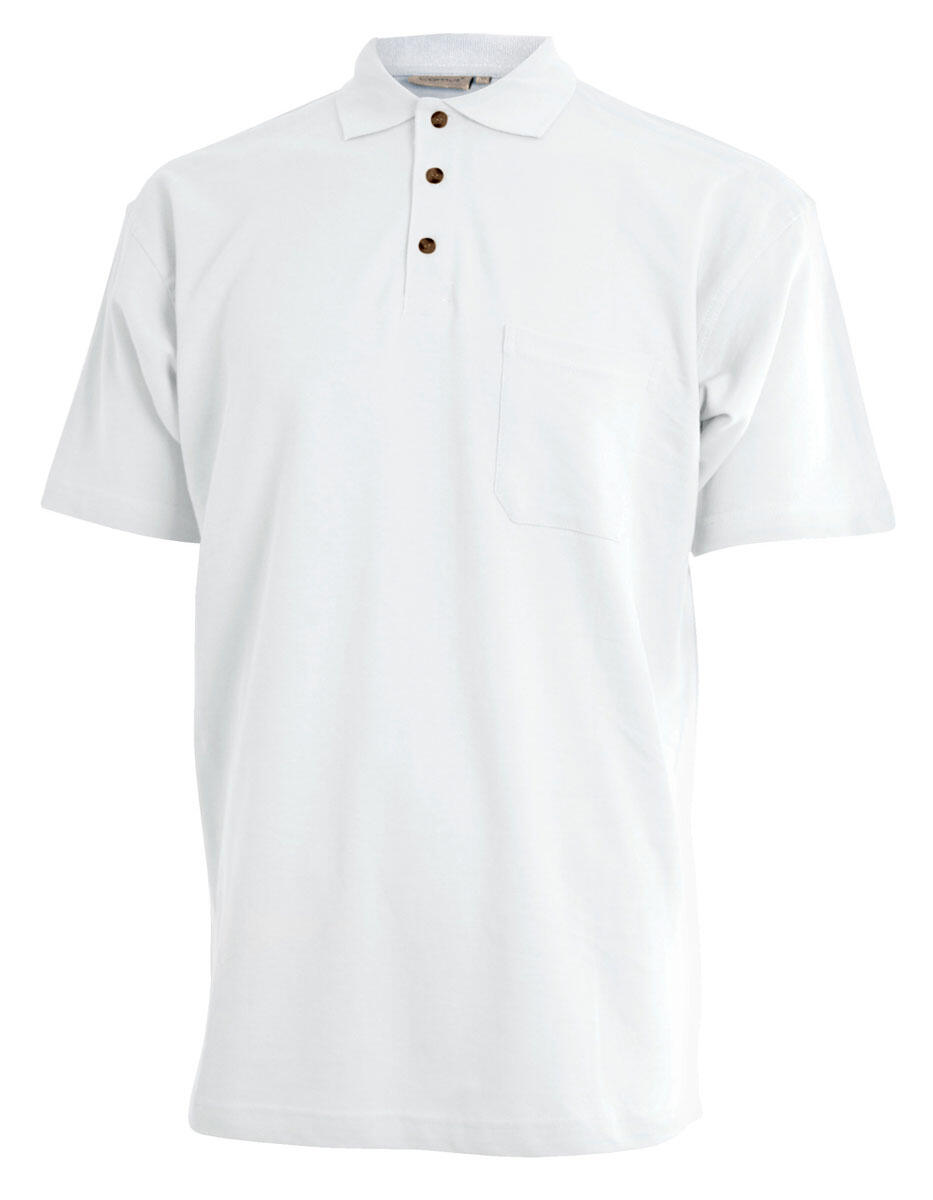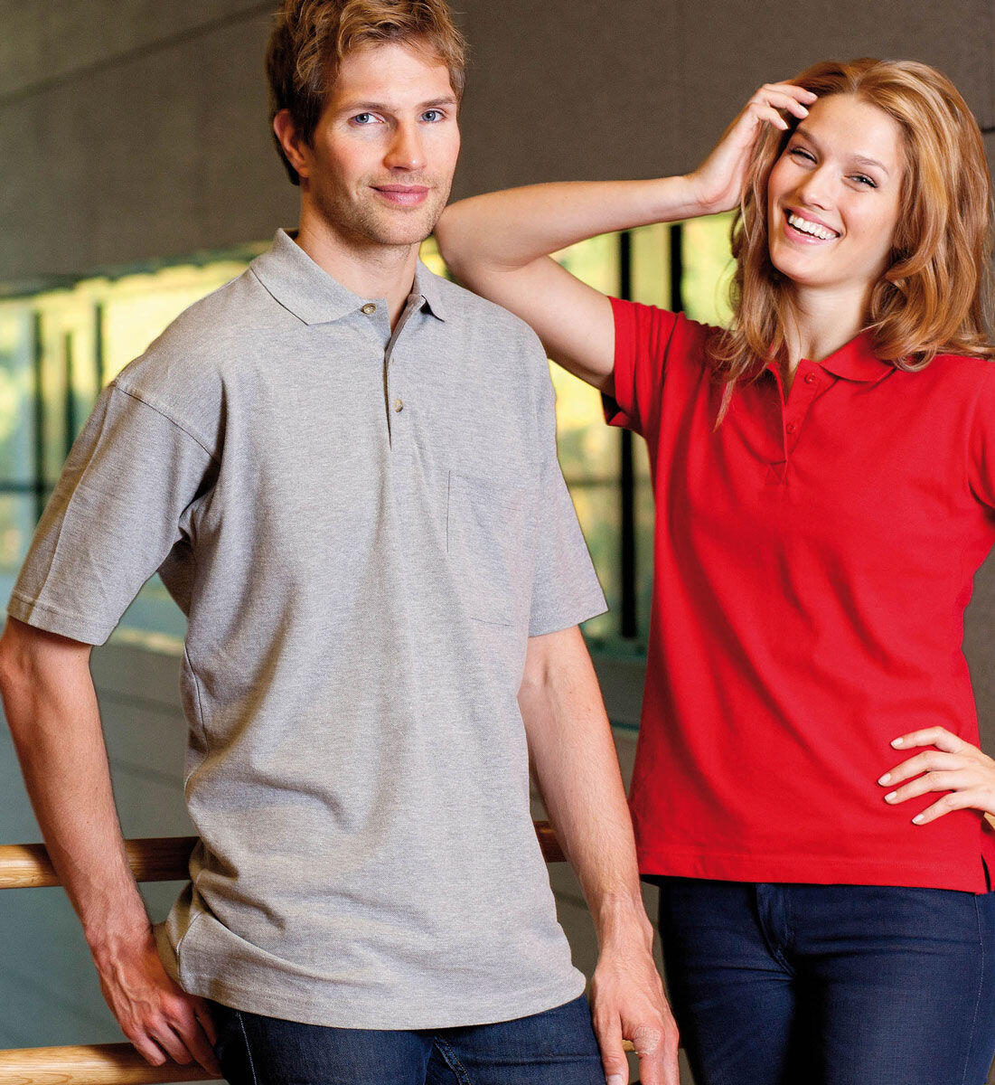 Kortärmad polo-shirt med knappar och bröstficka. Polo-tröjan är pique-stickad, vilket betyder att den har en lätt våfflad yta. Modellen finns i flera olika färger.