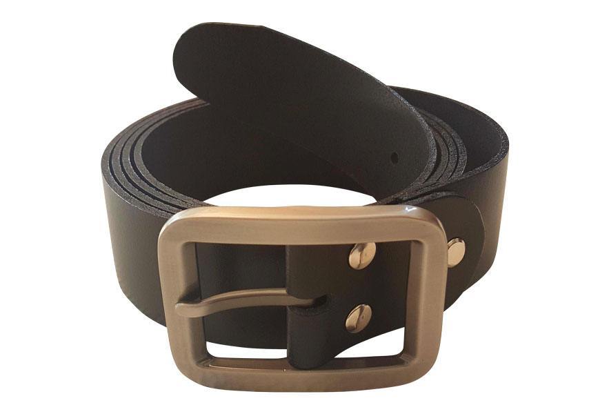 Svart läderbälte med stort spänne (Scanbelt)