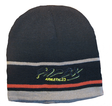 Stickad mössa - svart med ränder (ljusbrun/orange)