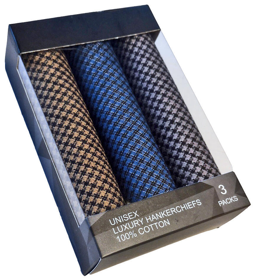 3-pack med lyxiga ficknäsdukar med klassiskt Houndstooth-mönster.