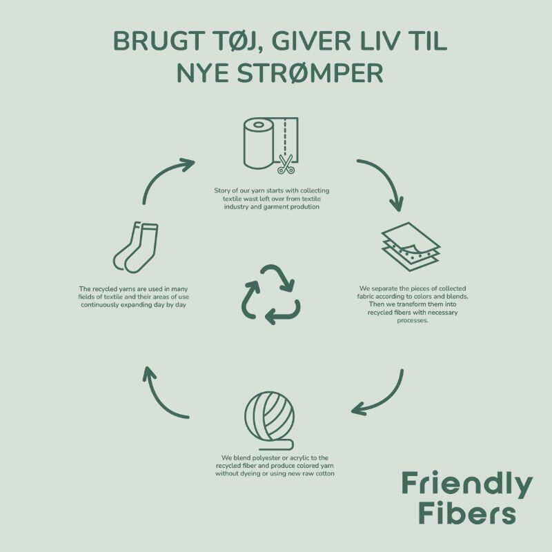 Strumporna är tillverkade av 80% återvunnen bomull, som kommer från rester från textilproduktionen.