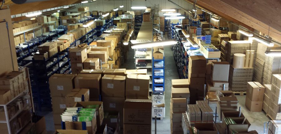 Vårt stora och breda utbud kräver ett stort lager. Nedan ser du en del av vårt lager och härifrån ser vi till att du kan bli klädd, från innerst till ytterst.